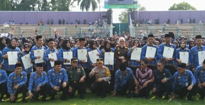 Ciamis, sergapnews.co – Bupati Ciamis Herdiat Sunarya telah membagikan SK Pengangkatan PPPK Paruh waktu Selasa (23/12/2025) di Stadion Galuh Ciamis, kepada sebanyak 3.554 orang.